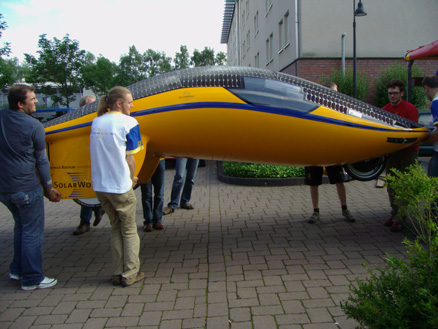 Das Highlight des Tages war mit Sicherheit das für die Solar-Challenge in Australien gebaute Rallye-Solar-Mobil der Fachhochschule Bochum, das an der Tour teilnehmen sollte.