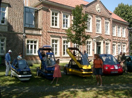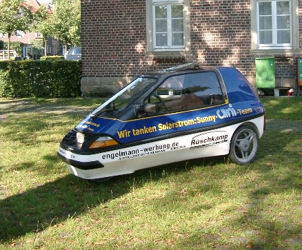 Im Rahmen einer Schau für leise und Umwelt-schonende Fahrzeuge ging das Sunny-Cani-Team, also die Arbeitsgemeinschaft, die sich seit Jahren mit regenerativer Energie beschäftigt, mit seinem taggenau restaurierten Elektrofahrzeug an die Öffentlichkeit.