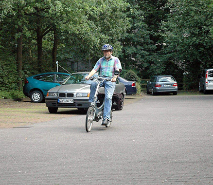 Als Freund der E-Mobil-Szene stieß ich auf das kleine Sesselrad Giant Revive EN3 mit Panasonic-Elektromotor und Lithium-Ionen-Akku und war von Technik und Design sofort begeistert, schließlich sollen die Li-Ionen-Akkus bei den Elektroautos endlich den Durchbruch zur Serienreife bringen, wie man derzeit in einschlägigen Veröffentlichungen lesen kann. Das Fahrrad der ehemaligen amerikanischen, heute chinesischen Nobelmarke kostet nach Listenpreis 1999 Euro, ist aber bei großen Fahrradhäusern für unter 900 Euro zu bekommen. Mit seinen 20-Zoll-Rädern, dem bequemen Komfortsattel mit Rückenlehne und mit einem Lenker, den man wegklappen kann, passt es wunderbar in den Laderaum unseres Vans, so dass ich es schnell mal eben mitnehmen kann. An die leicht liegende Sitzposition kann man sich bald gewöhnen, auch das Treten nach schräg vorne empfindet man nach der Gewöhnungsphase als angenehm.