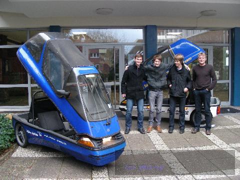 Lüdinghausen. Das Sunny-Cani-Team am Gymnasium Canisianum hat eine neue Mannschaft: Gero Borrmann ist der neue Betreuungslehrer, Thomas Hols (rechts), gelernter Elektriker und für die gesamte Haustechnik am Cani zuständig, hält mit den Schülern Fabian Sölker, Marius Hülk und Ferdinand Brinker (von links) die beiden Elektrofahrzeuge der Schule in Schuss. Das neuere wurde dem Canisianum vor einiger Zeit von Dr. Wolfgang Graute geschenkt. Dass die beiden Oldies der Elektroauto-Geschichte, an denen regelmäßig alle zwei Wochen gebastelt wird, überhaupt am Straßenverkehr teilnehmen können, verdanken die Schüler aber auch dem Engagement zweier Partner des Netzwerks ruhrmobil-E: das Autohaus Rüschkamp übernimmt seit Jahren die Versicherung, die Akkus stammen von JEWO-Batterietechnik in Bochum. Die beiden Geschäftsführer, Joan Hendrik Rüschkamp und Michael Teupen, freuen sich, dass es in Lüdinghausen wieder Schüler gibt, die sich für Elektromobilität begeistern können. Und die Schüler lernen in der AG nebenbei so einiges über Elektrotechnik und Automechanik. Das Sunny-Cani-Team ist übrigens wieder ein wichtiger Aspekt bei der Agenda 21-Bewerbung zur „Schule der Zukunft“ in NRW gewesen, bei der Auszeichnungsfeier im nächsten Jahr möchte das Team mit seinen Autos natürlich dabei sein.