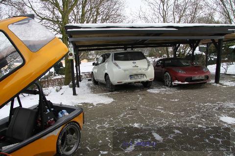 Neben zwei dreirädrigen City-Els, einer davon mit Lithium-Ionen-Akkus aufgerüstet,  waren Elektrofahrzeuge neuester Generation dabei. Man konnte das Rekordfahrzeug der Firma BEA-tricks sehen  – einen betagten Citroen Berlingo electrique –,  den Firmenchef Daniel Sperling so mit hoch leistungsfähigen Lithium-Ionen- Batterien ausgestattet hatte, dass er damit ohne Nachladen eine 1000 km –Rekordfahrt bewältigen konnte. Zwei neue Nissan Leaf waren zugegen, einer davon mit einer portablen Schnellladestation ausgestattet , die das Auto in einer Stunde wieder für eine Reichweite von über 150 km mit Strom voll pustet,  zwei  neue Peugeot iOn und ein superschneller Tesla-Roadster, immer noch der Traumwagen in der Elektroauto-Szene.