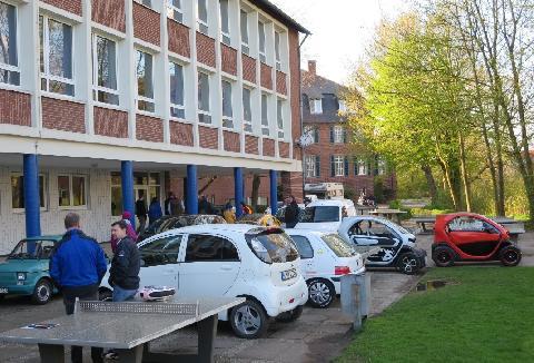 Lüdinghausen. Trotz des durchwachsenen Wetters war die 10. Solarchallenge Münsterland eine der größten. Der Einladung des Sunny-Cani-Teams und des EL-Team-Münsterland waren etwa 35 Personen gefolgt, über 30 Elektrofahrzeuge – vom Youngtimer bis zum Neufahrzeug (zwei davon vom Autohaus Rüschkamp zur Verfügung gestellt) – beteiligten sich an den Ausfahrten. Allein das in der Szene weltbekannte Solarcarteam von der Hochschule Bochum war mit acht Leuten, seinem selbst konstruierten Solarcar und Begleitfahrzeugen dabei. Team-Mitglied Sylvia Illberger aus Lüdinghausen stellte das Objekt ihrer Bachelor-Arbeit vor, sie hatte einen Youngtimer „Hotzenblitz“ aus den 1990er Jahren technisch auf den neuesten Stand gebracht und damit jetzt erfolgreich ihren akademischen Abschluss erreicht. Vor Jahren war sie die erste weibliche Auszubildende für Mechatronik im Autohaus Rüschkamp, nun gibt sie ihr Wissen bereits an junge Studierende der Hochschule im Fach Elektromobilität weiter. Der eingeschränkte Sonnenschein schränkte die Solarfahrzeuge übrigens nur bedingt ein, da sie die Energie aus einer Speicherbatterie nutzen und sich den benötigten regenerativ erzeugten Strom aus dem Netzverbund holen. Nur das Solarcar hat auf dem Dach eigene Hochleistungs-Solarzellen.