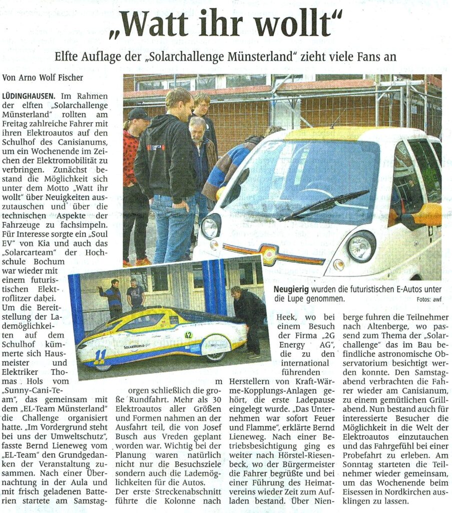 WN: „Watt ihr wollt“ Elfte Auflage der „Solarchallenge Münsterland“ zieht viele Fans an