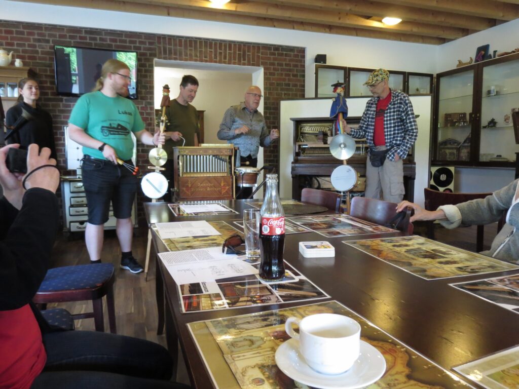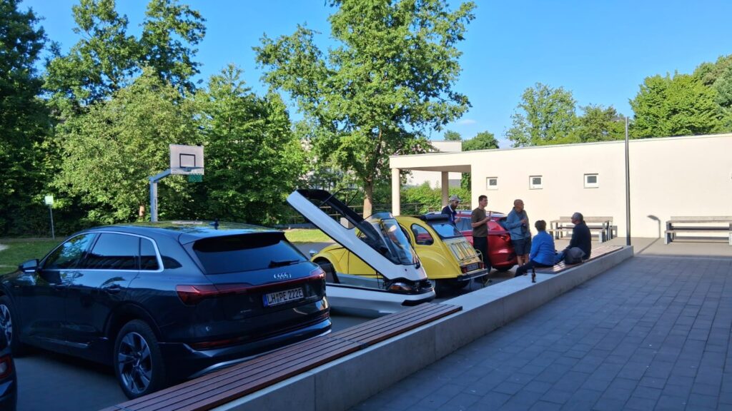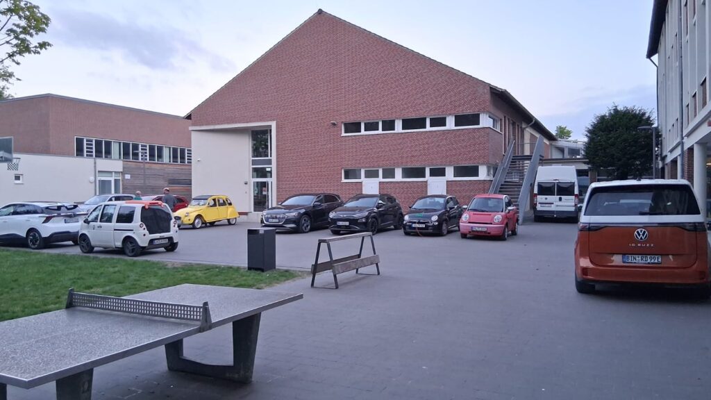 Lüdinghausen. 27 Teilnehmer aus inzwischen drei Generationen trafen sich am vergangenen Wochenende zur Solarchallenge Münsterland in Lüdinghausen. Gastgeber waren wieder das EL-Team Münsterland und das Gymnasium Canisianum, wo die Bedingungen als Basislager einfach optimal sind. Am Freitagnachmittag startete das Programm im Autohaus Rüschkamp, wo der Förderer der Elektromobilität Joan Hendrik Rüschkamp die 200-jährige Geschichte der Firma kurzweilig besonders auf die Elektroautoenthusiasten abstimmte. 30 Jahre Elektroautos spiegelten sich in zwei Elektroautos wider, dem Pionierfahrzeug Hotzenblitz aus den 1990er Jahren und dem nagelneuen Leapmotor T03, der technisch weit überlegen ist und nur noch etwa die Hälfte kostet und mit ca. vierfacher Reichweite besticht. Abends sprach der Elektrotechniker und Solarberater Eckhard Wolf aus Soest über das Thema „Vehicle to Home“. Diese günstige Nutzung von Batteriestrom aus dem Auto ist schon heute ohne bürokratischen Aufwand möglich, wenn das Auto mitspielt, weil die gesamte Technik vor dem Zähler verbaut wird. Die eigentliche Ausfahrt begann dann am Samstag bei strahlendem Sonnenschein in Karthaus, wo die Tierärztin und Klinikleiterin. Dr. med. vet. Elisa Dorrego Keiter mit großer Leidenschaft und brillanter Eloquenz den Gästen Einblick in alle Sparten moderner Tiermedizin verschaffte. Von der Röntgenabteilung über MRT, Orthopädie, Zahnklinik und Augenheilkunde bis hin zur eigenen Apotheke im Tierkompetenzzentrum konnte alles in Augenschein genommen werden. Nächstes Ziel war der Alte Hof Schoppmann in Darup, wo es nicht nur das von der Sparkasse Westmünsterland gespendete Mittagessen gab, sondern wo im Naturschutzzentrum des Kreises Coesfeld auch die ersten Rallyefragen beantwortet werden mussten. Über den Kreativgarten in Darup und die Stiftsgemeide Nottuln ging die Tour dann weiter nach Hiddingsel zum kleinen mechanischen Musikmuseum. Wilfried Thoms und seine Enkelin erzählten kurzweilig über ihre gesammelten Raritäten. Ein Trichter-Grammophon aus dem Jahr 1907, ein Walzenorchestrion von 1895, ein Lochplatten-Musikwerk von 1920 sind nur einige der Schätze, die die Familie im Laufe der Zeit zusammengetragen und mit viel Liebe zum Teil selbst restauriert hat. Elektrofahrer wurden hier sogar selbst zu Leierkastenmännern, beim Mitmachen als Straßenmusiker kamen bei den Autotechnik-Freaks Spaß und Stimmung auf. Beim Grillfest am Abend konnten nicht nur Fleisch und Würstchen, sondern auch die unterschiedlichsten Tageserlebnisse verdaut werden.